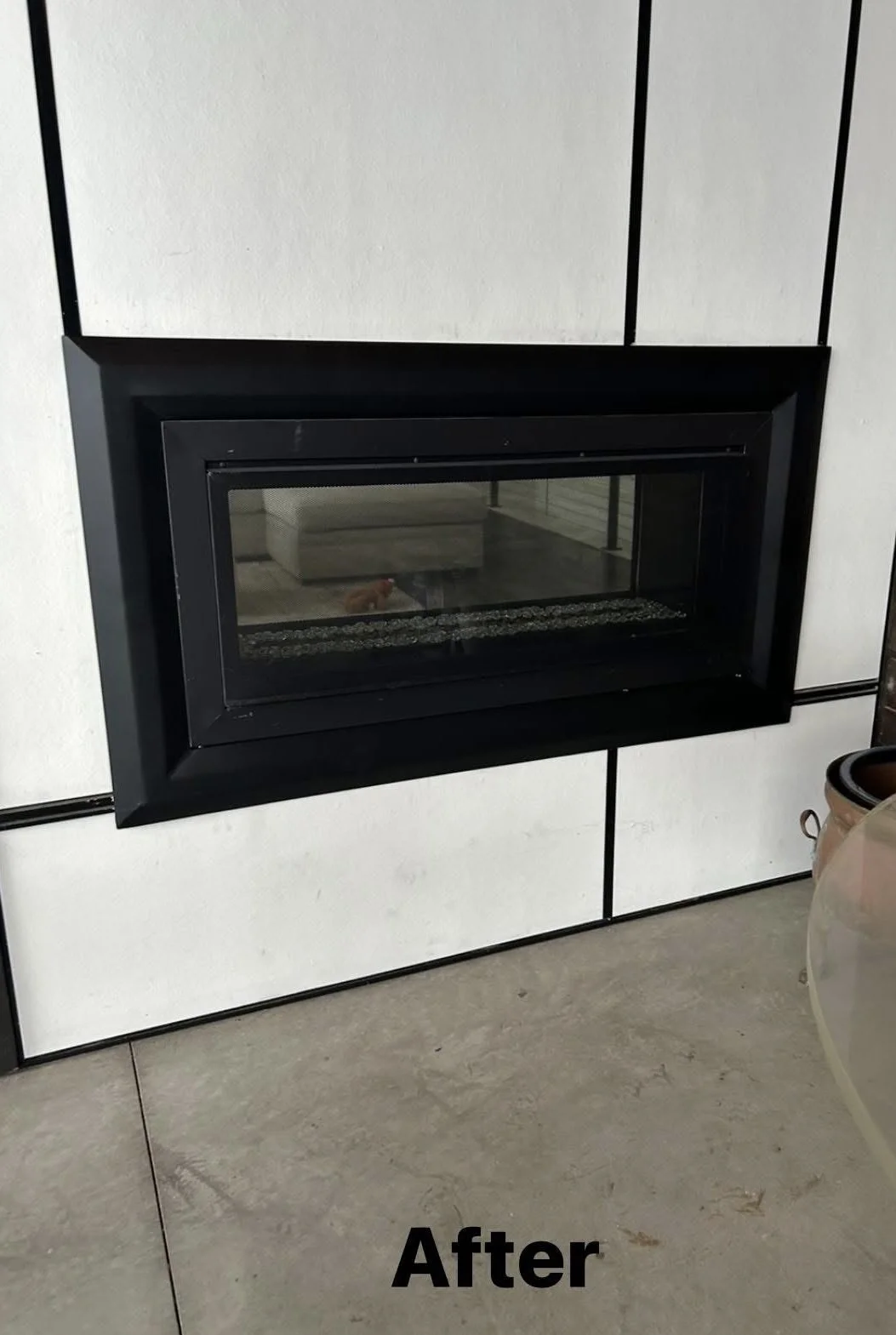 A person welding on a balcony of a modern, white house with a garage door below, under a clear blue sky.